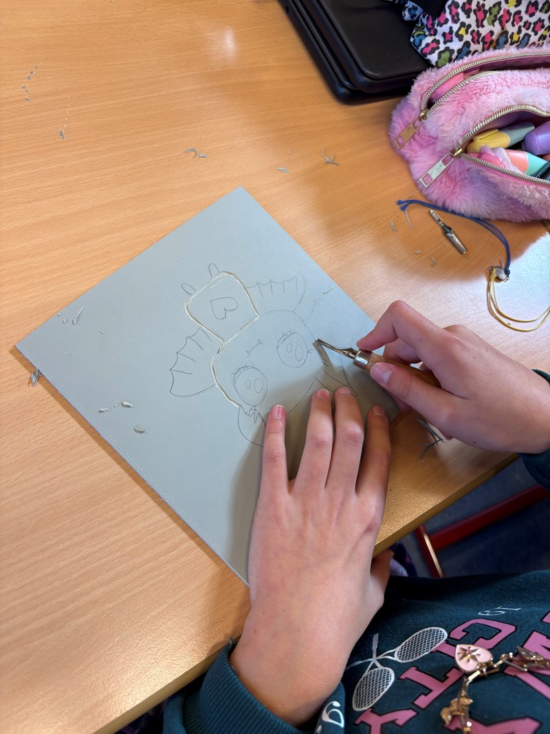 Groep 8 heeft afgelopen week een leuke knutselopdracht gemaakt. We zijn gestart met het ontwerpen van een patroon, waarbij er nagedacht moest worden dat dit in spiegelbeeld wordt getekend.