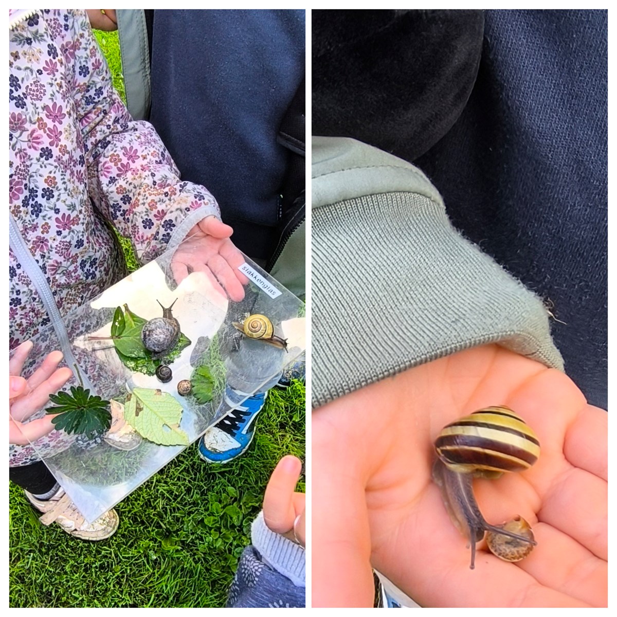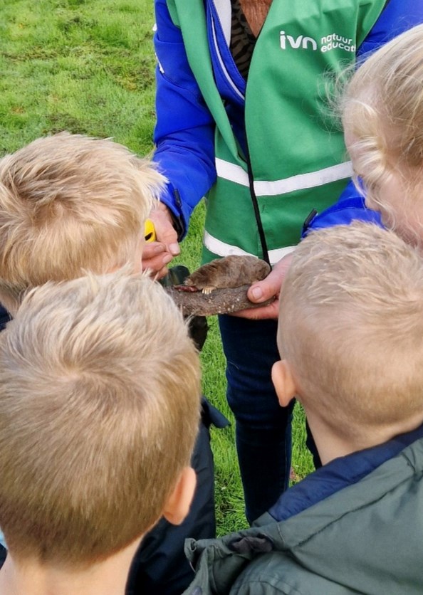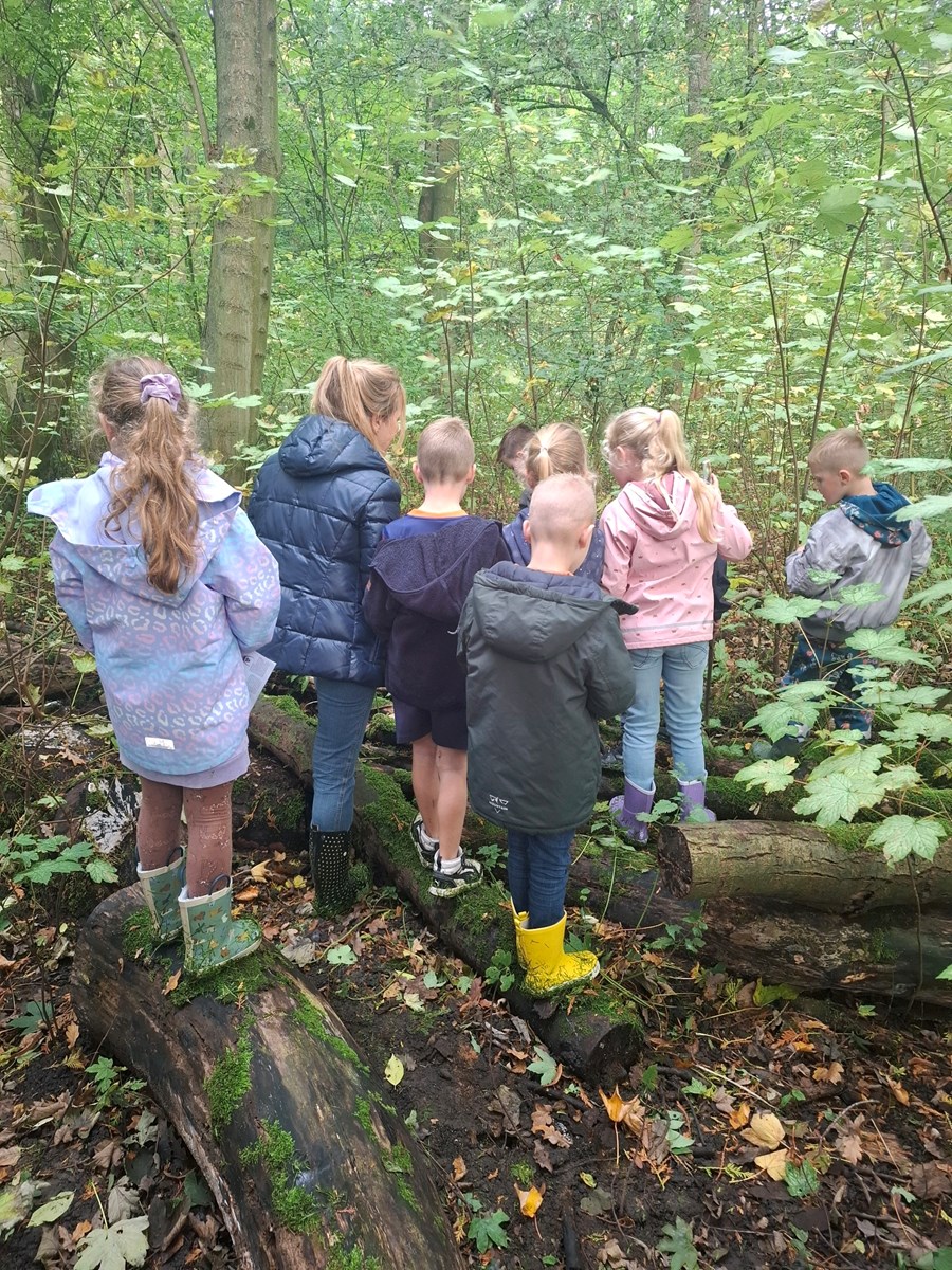 Genoten van prachtig weer in een kleurrijk herfstbos 🍂. We vonden bladeren in verschillende kleuren en vormen. We hebben slakjes 🐌 bekeken met hun ogen op steeltjes. We vonden verschillende paddenstoelen 🍄🟫 en hebben zelfs een muisje 🐁 gespot. We hebben de gang in een molshoop bekeken en weten nu dat een mol niet groot is, slecht kan zien, graaf pootjes heeft en de vacht zacht aanvoelt.