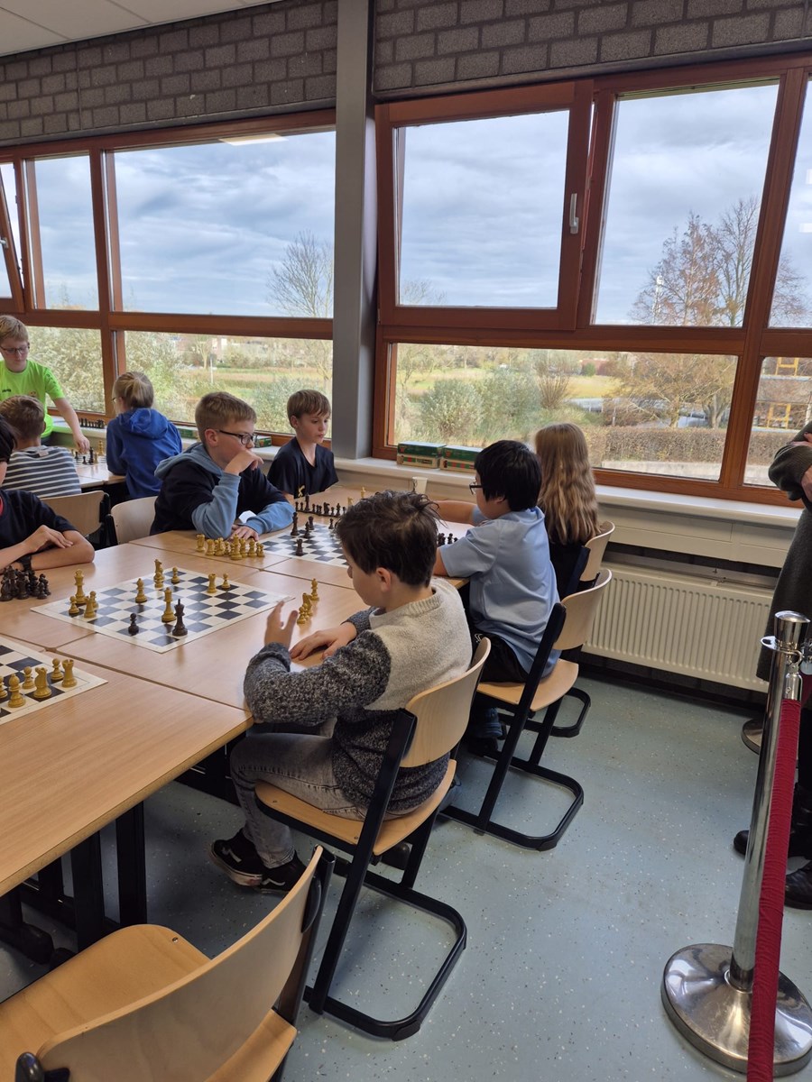 De kinderen hebben in opperste concentratie deze middag verschillende schaakwedstrijden gehouden tegen kinderen van andere scholen. Er waren ook een hoop ouders om te supporten, wat het extra leuk maakte!