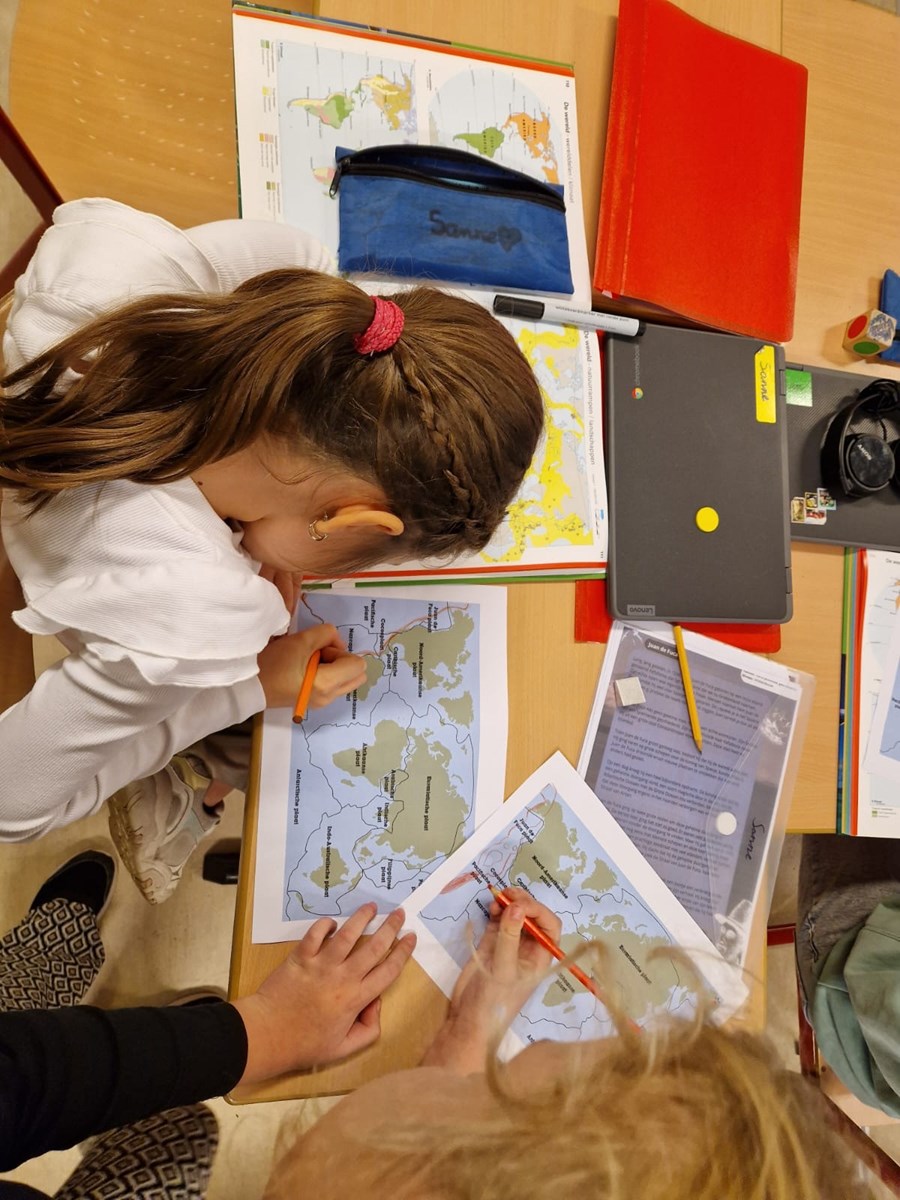 Groep 5/6 verdiept zich tijdens het thema aarde in de geosfeer; de rotsen en de grond waarop wij lopen en alles wat daaronder zit, zoals de aardkorst de mantel en de kern. In één van onze lessen hebben geleerd over aardplaten. In de atlas zijn we op zoek gegaan naar platentektoniek en hebben we gekeken hoe aardplaten langs elkaar bewegen.