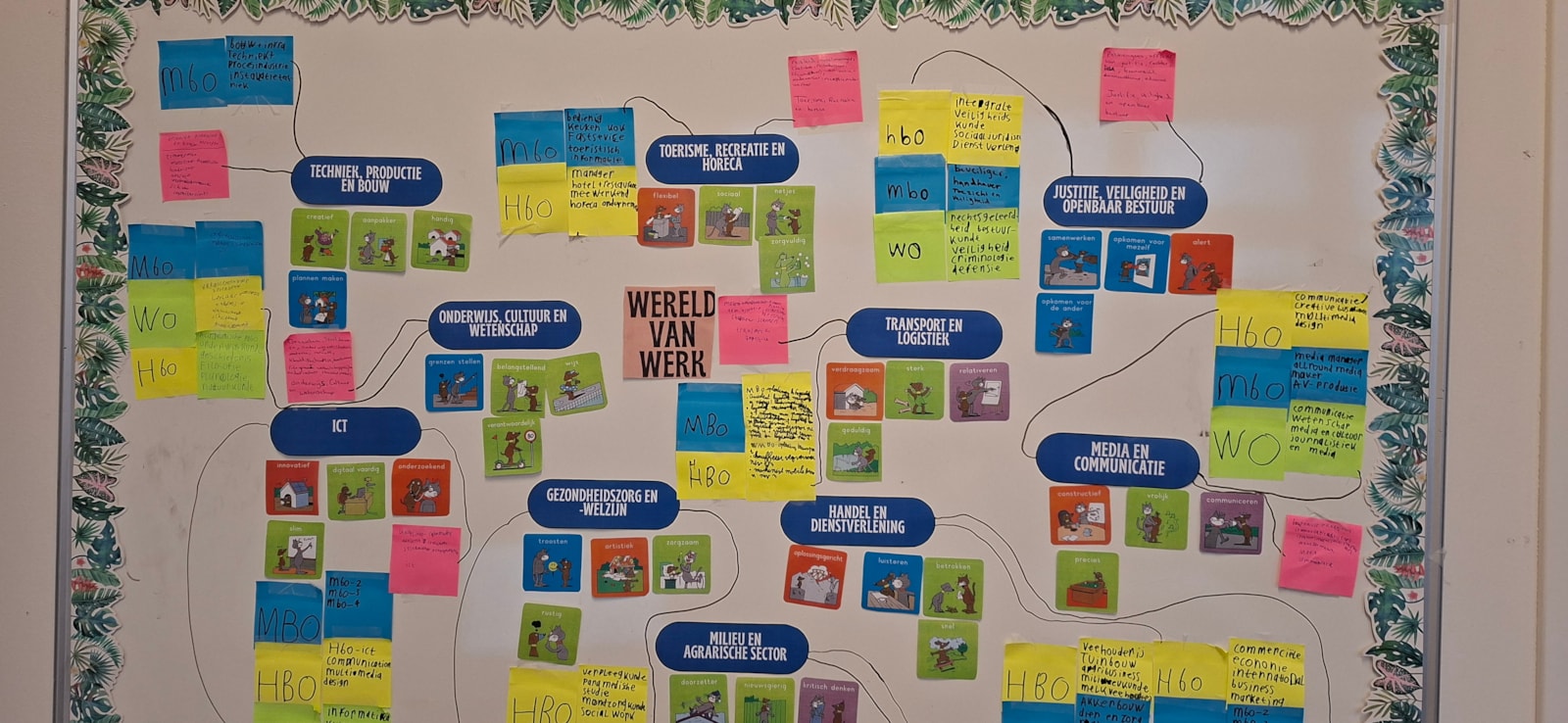 De wereld van werk: in de bovenbouw kijken we naar de verschillende sectoren van werk, welke vaardigheden heb je daar nodig en welke vaardigheden heb ik? Welke opleiding heb ik nodig en waar zou ik goed in zijn, of wat past bij mij?