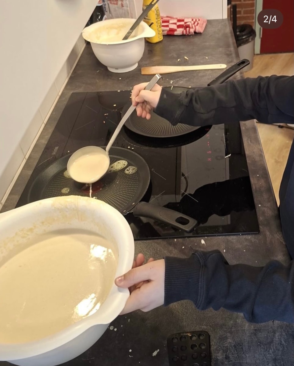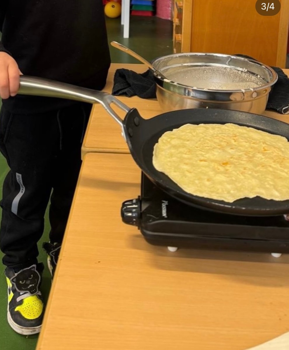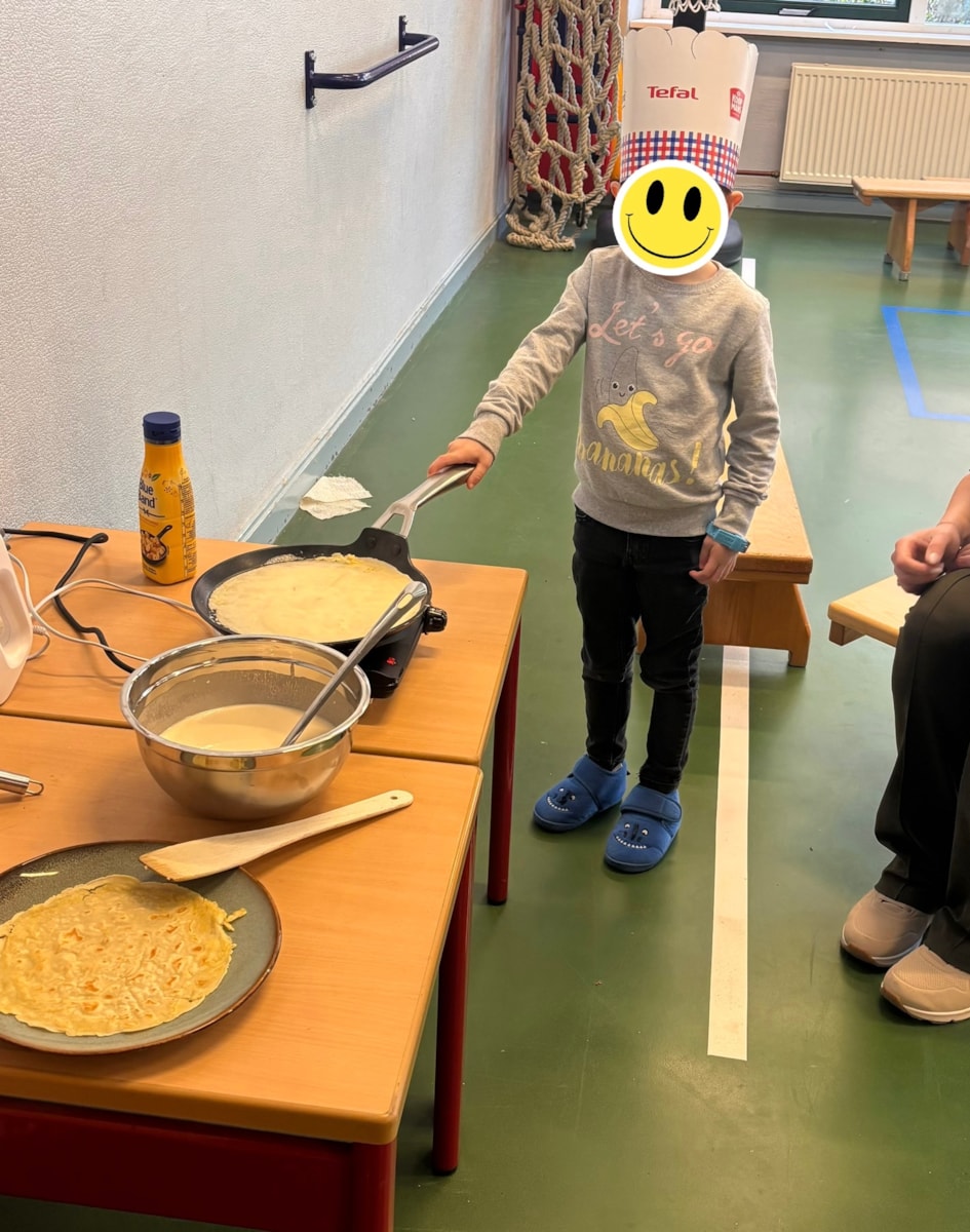 Wat rook het lekker in de school vandaag! Iedereen heeft geholpen met bakken.🧑🍳Daarna hebben de peuters en kleuters samen met de ouders een pannenkoek gegeten en groep 3 t/m 8 kregen de opa’s en oma’s op bezoek. 🥞